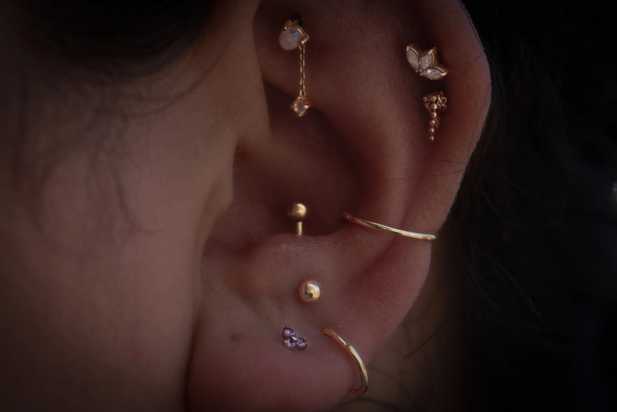 We are committed to offering only the best for our clients, which is why we use high-quality, implant-grade jewelry for all our piercings. This ensures not only a stunning look but also minimizes the risk of allergic reactions and promotes optimal healing. Our selection includes a variety of styles and materials to suit your personal taste, all designed to provide you with the utmost comfort and safety. It’s crucial to us that you leave with what you were looking for, followed by an easy healing experience with no worries.